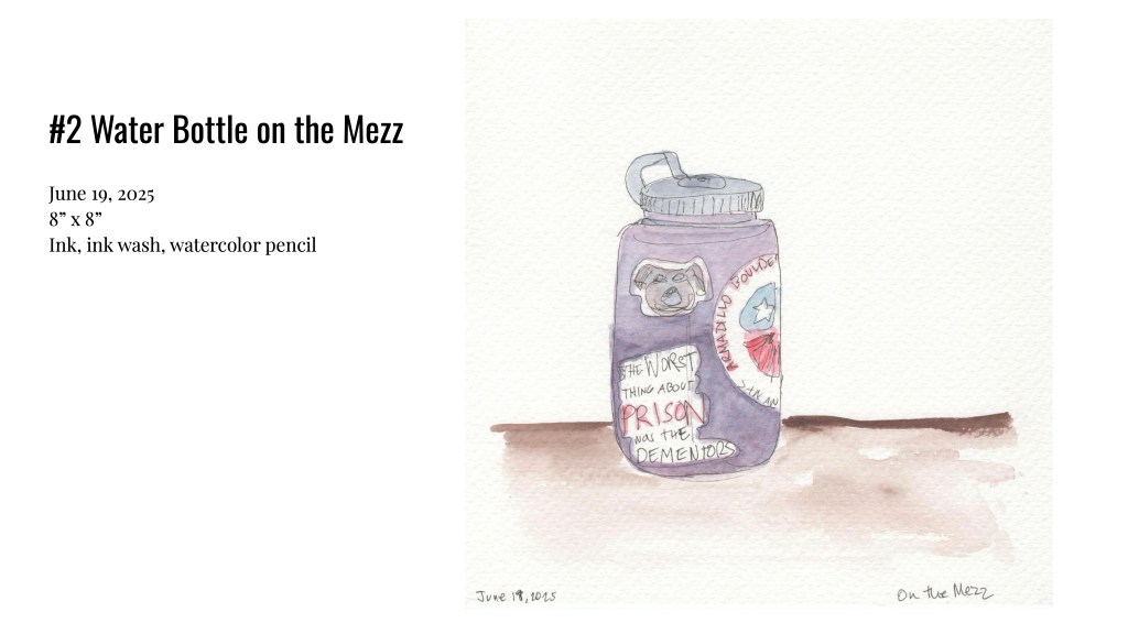 It took me two tries to get this one to look โcorrect.โ The scale and perspective were very, very off in the first one. I tried erasing and fixing it but it was too much work. So I decided to start over, and Iโm glad I did. Despite the imperfections, I still like this one a lot.