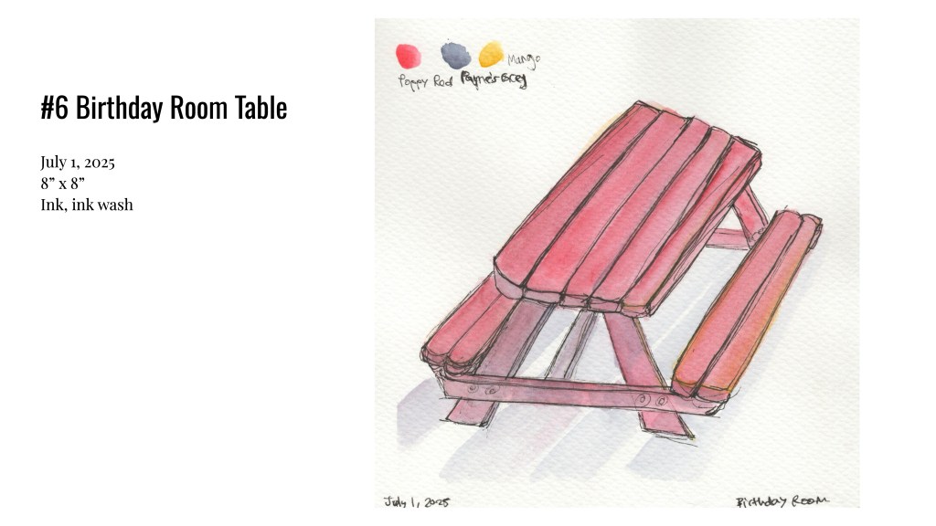 - Create weekly line and wash sketches on location (I chose ABP Summer Camp during craft time.)