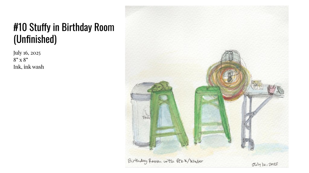 Oh, and the last two were on 5โx7โ watercolor paper because Iโd already used all of my 8โx8โ paper. I did some random doodles with the kids during craft time over the summer. I didnโt expect to run out of pages because I didnโt expect to produce this many paintings. So I do not mind at all.