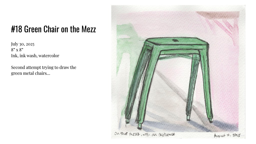 This was also my first attempt sketching these green stools. They taunted me for weeks after.