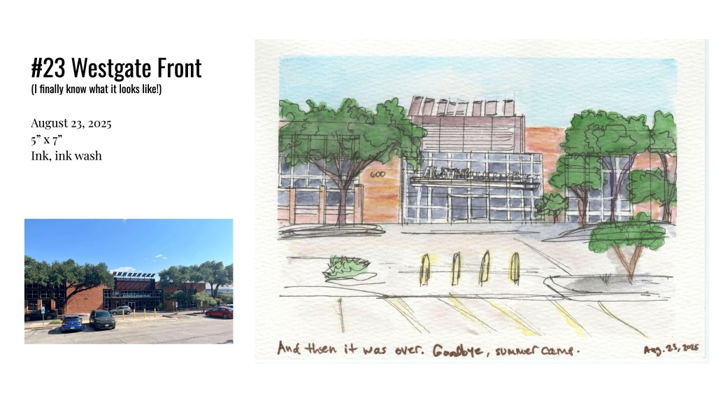 UGH. This was not even half-assed, maybe quarter-assed? This is one of three in this series Iโd like to throw away forever. But it is an urban sketch, so Iโm keeping it in. I actually completed it in-person with a horde of children watching me.